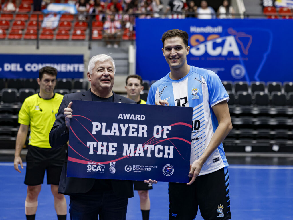 . Agustín Unzner MVP of the match against Chile in the SCA Senior Handball. Photo: COSCABAL / Jorge Olmedo.