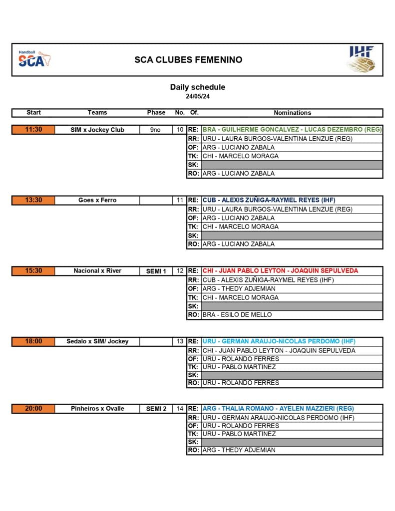 Se va definiendo la competencia, en el turno mañana los primeros árbitros en pitar será la dupla brasileña compuesta por Guiherme Gonçalves y Lucas Dezembro desde las 11.30 horas.