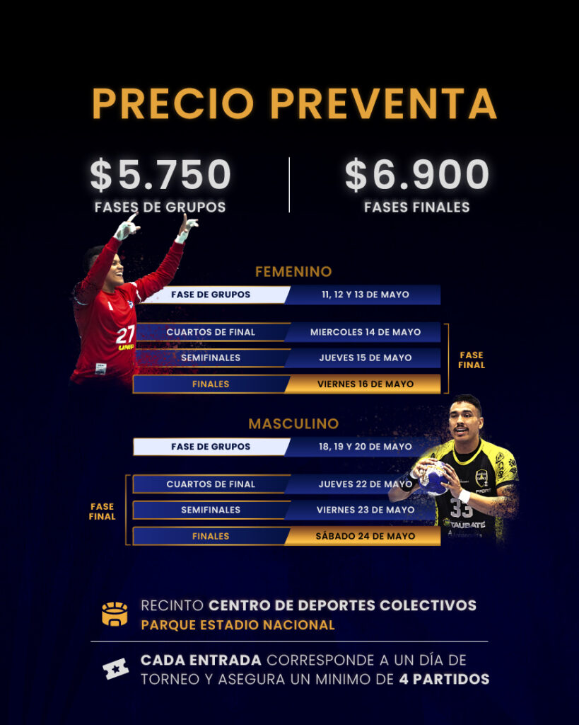 Tú puedes ser parte de «La Libertadores del Handball» en Santiago de Chile, accede a la preventa exclusiva de tickets hasta el 11 de abril o hasta agotar stock ingresando a Goldenpass.cl